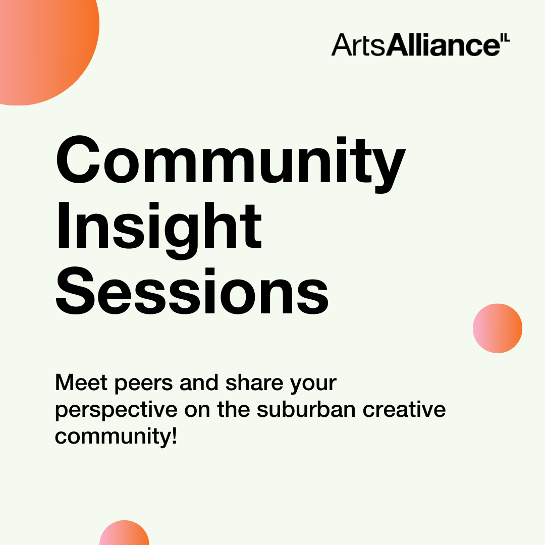 This fall, Arts Alliance Illinois and Cook County Arts are hosting Community Insight sessions across the suburbs. These gatherings will bring together artists, creative businesses, cultural organizations, residents and anyone interested in shaping local government to share experiences, connect with peers, and foster a stronger suburban creative community. More than 600 residents and cultural workers have already participated in a countywide survey. Now it’s time to continue the conversation in person.