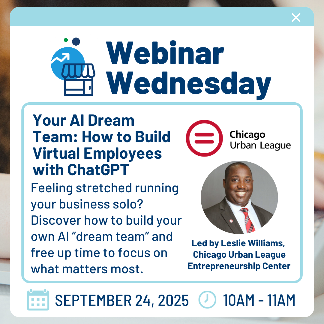 Feeling overwhelmed running your business solo or with a lean team? You're not alone! Join our September Webinar Wednesday to learn how to build a team of AI-powered ‘virtual employees’ to help your business using tools such as ChatGPT.