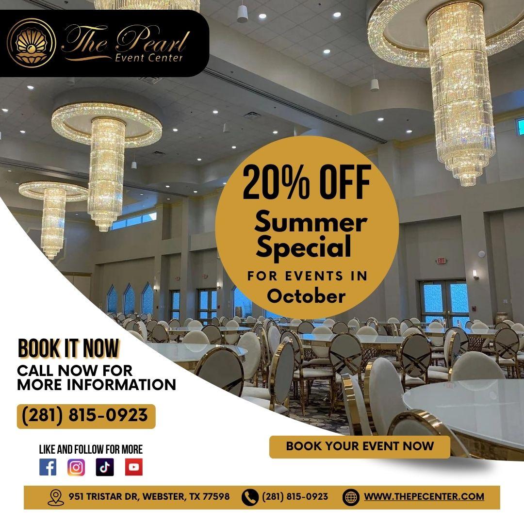 BOOK TODAY & SAVE 20% - PEARL EVENT CENTER