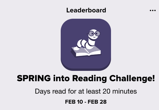 The Media Center will host a pizza lunch at the end of February for the top 5 student readers (as long as the total minutes exceed 340).