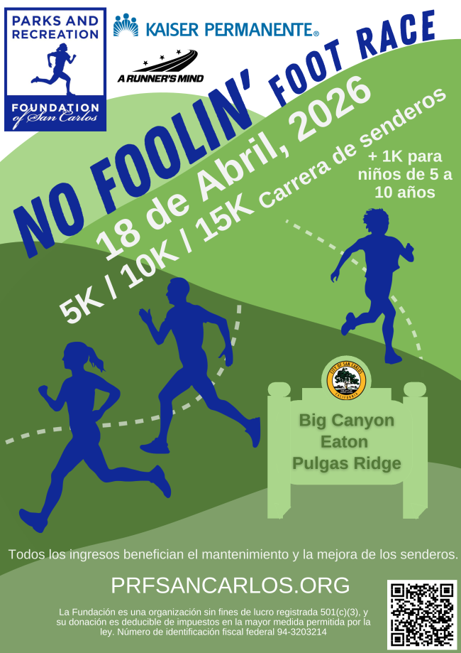 | | Like to Run? No Foolin' Foot Race! | | Join us for the fourth annual San Carlos Parks and Recreation Foundation No Foolin' Foot Race on Saturday, April 18, 2026! Take on the challenging 5K, 10K, or 15K trail race and younger kids can run the 1-mile kids race through beautiful Big Canyon, Eaton, and Pulgas Ridge (15K only) Parks to benefit San Carlos trail maintenance and improvements. Sign up to run or to volunteer at the race. Register Today! | | Study Spanish in Costa Rica – High School Summer Opportunity | | |
