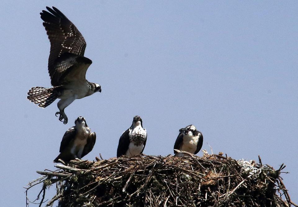 For years a family of ospreys have nested atop this pole that rises from the water of Struve Slough in Watsonville. Three fledglings are currently at the nest. To view them, take the Buena Vista exit from Highway 1 and head west toward the landfill. In less than a mile, take a left on Harkins Slough Road and wind around the back of the landfill. Follow that road until it winds down a hill through a forest of oaks. Park at the caved in metal gate that once blocked the road. Where the pavement disappears into the water of the slough you’ll see the pole with the nest in plain sight. You might have to wait a spell before there’s activity. You might also luck out and see American white pelicans, a green heron, great blue herons and other birds in the meantime.