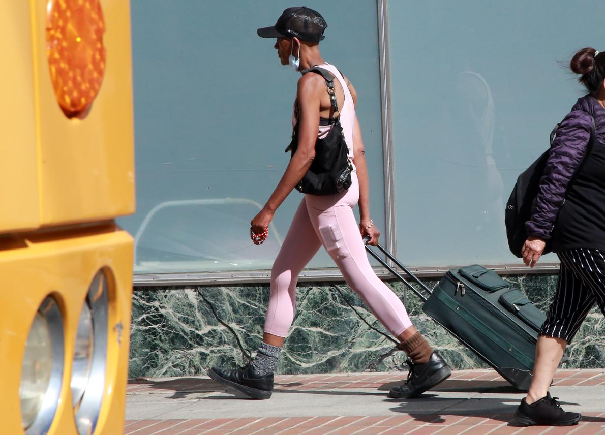 Fashion Street - This man came to downtown Santa Cruz in his pink spandex outfit.