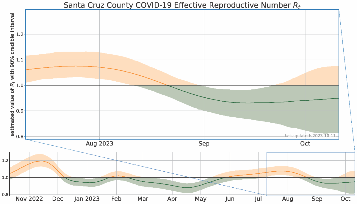 The state's website reports that the current total of confirmed Covid deaths in Santa Cruz County is at 335, up from 333 for the last two weeks.