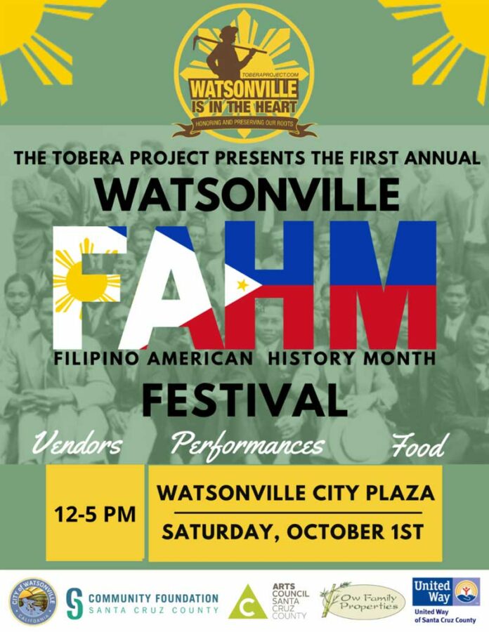 Filipinos have lived and worked in Watsonville for nearly 100 years but they have been in the continental United States since 1587. The Tobera Project, founded in 2019, and responsible for the digital archives of Filipinos in the Pajaro Valley, “Watsonville is in the Heart,” is now sponsoring a fun-filled festival, from noon to 5pm, tomorrow, Oct. 1 .