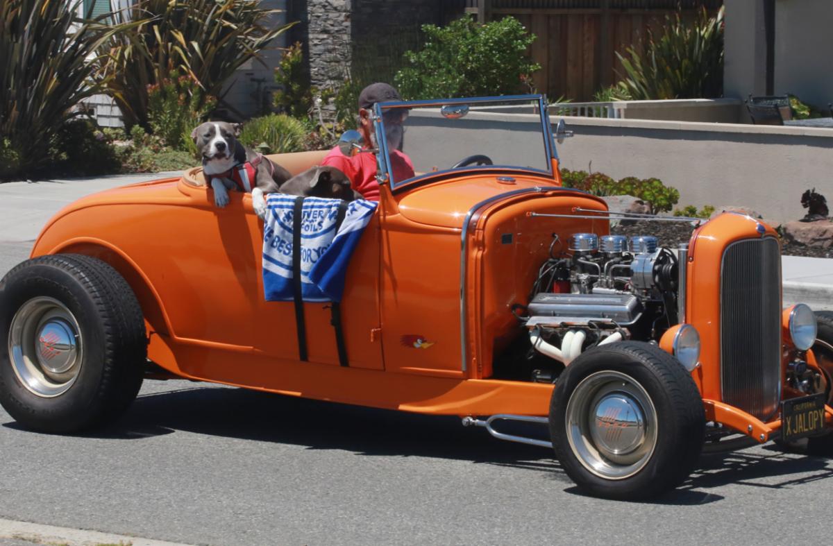 Fashion Street - A man and his dog enjoy a slow cruise along West Cliff Drive in Santa Cruz.