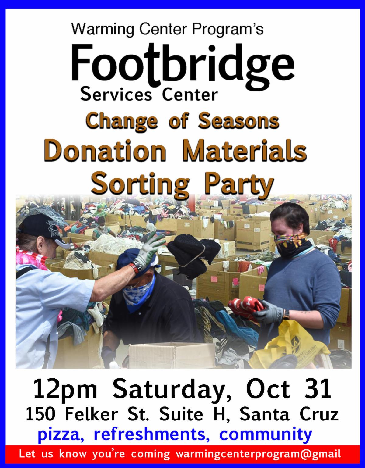 As the weather begins to change, our Warming Center Program's donation service also change to reflect the needs of those who sleep outside. We trade warmer clothing for the summer wear people have been requesting and we sort a large stock of newly donated materials.