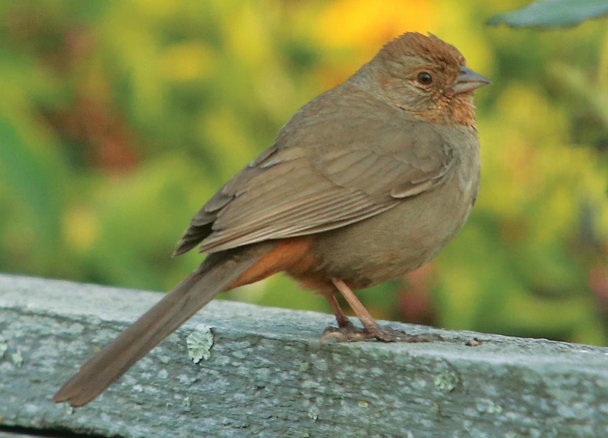 A towhee makes a routine stop on a fence in Pajaro Village in Watsonville.