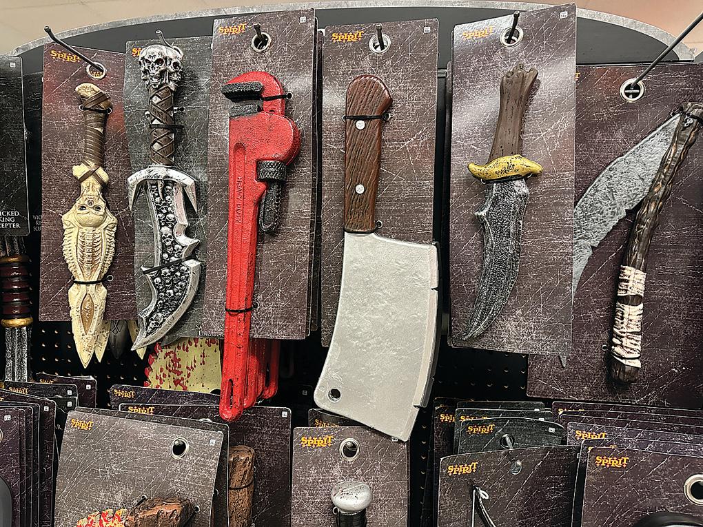 Fashion Street - Part of the Capitola Mall, that used to be occupied by Sears, is now Spirit Halloween, the "World's #1 Halloween Costume Store, according to their website. There are over 1,300 pop-up stores across the US with about 20 just in the South Bay. Several are in abandoned Sears. I think you'll be amazed. Note the plastic meat cleaver and pipe wrench below. This is only a tiny selection. There are several life sized models of decorated doorways that will provide inspiration and sales. I talked to a mom who brings her son there everyday for entertainment. According to the clerk, the most popular products that they just can't keep in stock are items related to the 1988 horror comedy movie "Beetlejuice." Everything in the store carries the Spirit label and I couldn't find anything that wasn't made in China.