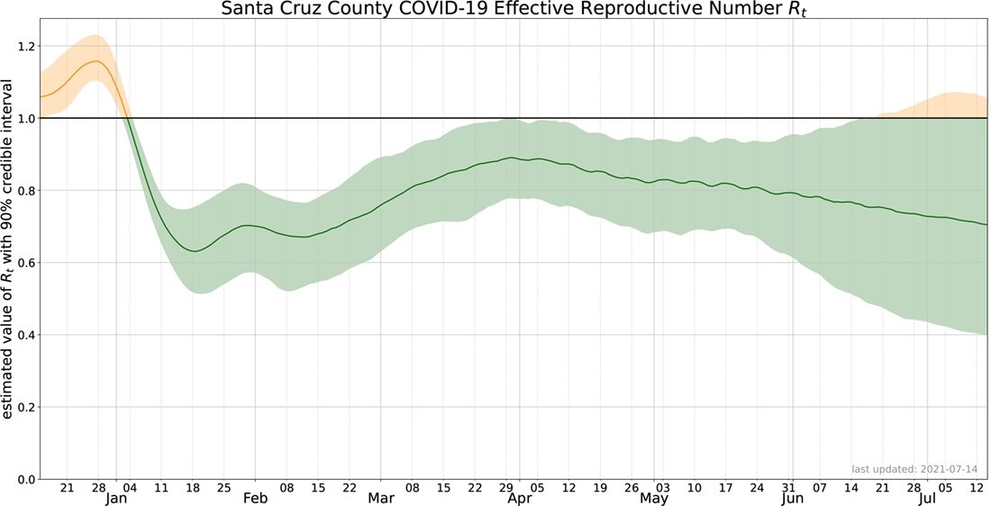 The county's Effective Reproductive Number is staying below one. See chart below. Numbers above one show the spread of the virus is increasing. Below one means the spread is decreasing.