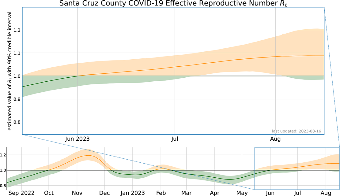 Santa Cruz County Covid-19 Report - Eighth week rise in Rt Number