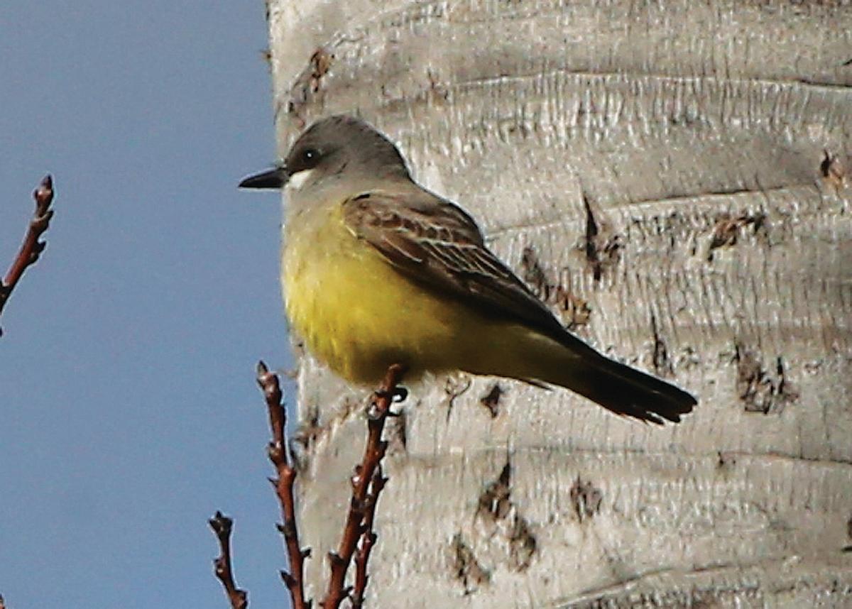 A kingbird keeps watch from a shrub in the San Joaquin Valley.