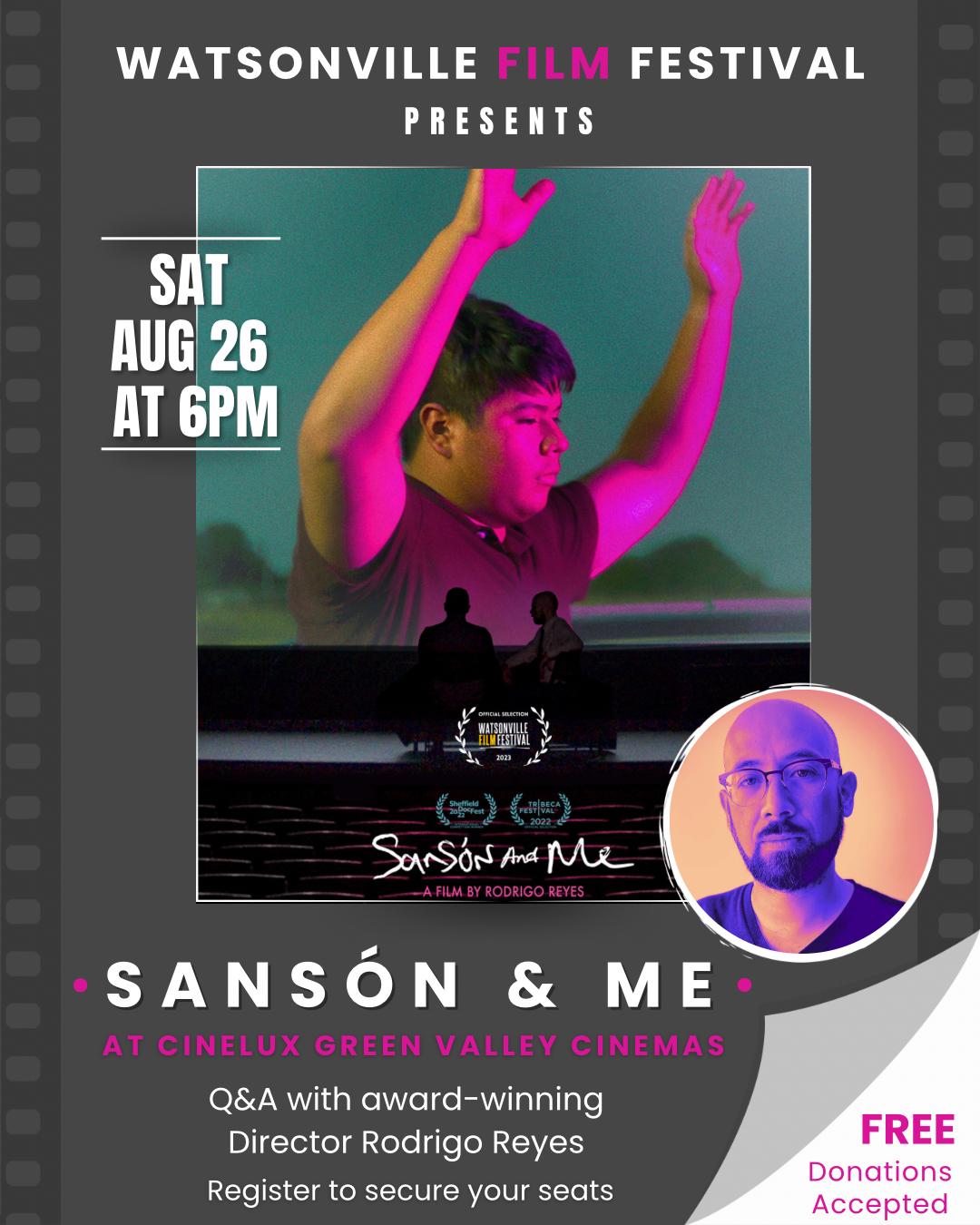 The Watsonville Film Festival will partner with CineLux Green Valley Cinemas to present the highly-acclaimed documentary film "Sansón and Me" on Saturday, August 26 at 6pm. The film event is free, but reservations are required.
