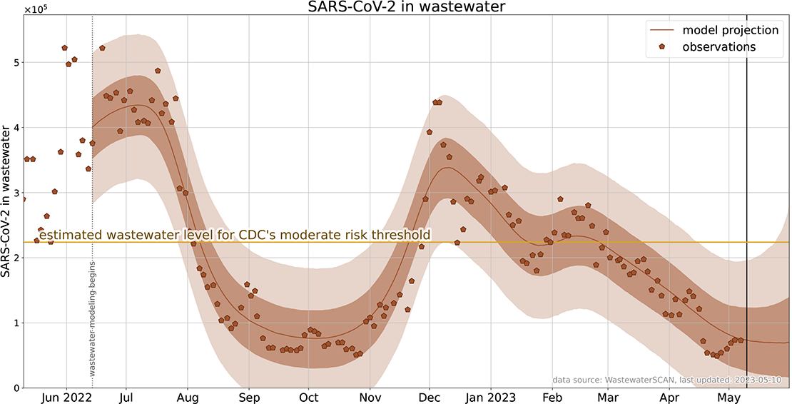 The second graph below shows data that the Health Department collects for Covid from wastewater at the City Influent, for the city of Santa Cruz, and from the Lode Street pump stations for the county.