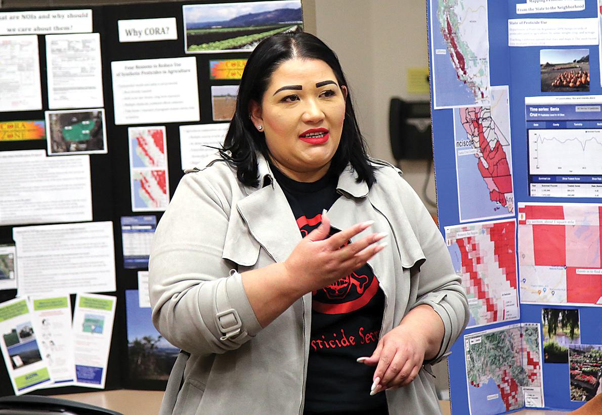 Yanely Martinez, organizer for Safe Ag Safe Schools and councilperson for Greenfield City Council speaks about the dangers of agricultural poisons on farmworkers and communities at the Reel Work Labor Film Festival held at Cabrillo College Watsonville event May 5.
