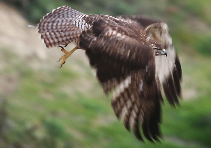A juvenile red-tailed hawk launches from the cliffs at Seabright State Breach.