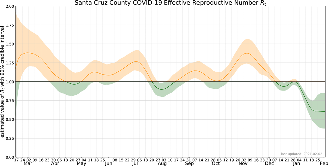 The county's Effective Reproductive Number is continuing to fall below one. See chart below. Numbers above one show the spread of the virus is increasing. Below one means the spread is decreasing.