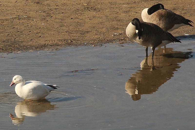 A snow goose is shown, to the left of two Canada geese, at the mouth of the San Lorenzo River in Santa Cruz on Dec.10. While common by the thousands in California's Central Valley, it is a rare visitor to our area. It breeds in the high Arctic tundra, according to “Field Guide to the Birds of North America” by National Geographic.
