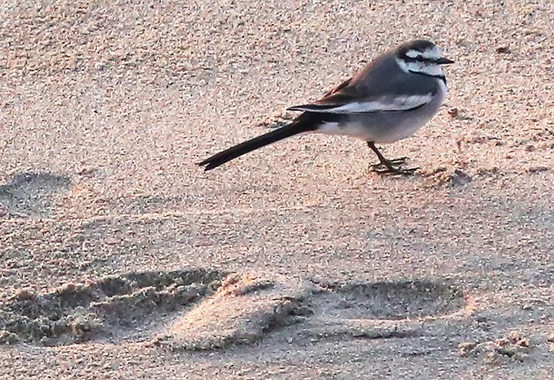 A white wagtail is shown on the beach at the mouth of the San Lorenzo River in Santa Cruz. The small bird is extremely rare in our area, being that they largely breed in Asia. A top birder in Santa Cruz County, Clay Kemph, said that only five of the birds have ever been recorded in S.C. County. Recently, there have been groups of birders with spotting scopes, binoculars, bird books and notepads, following the bird around at Corcoran Lagoon, between Portola and East Cliff drives at 21st Ave. where the KSCO radio towers are, and at the San Lorenzo river mouth. A telltale sign of the little bird is its wagging tail that goes up and down, not back and forth.