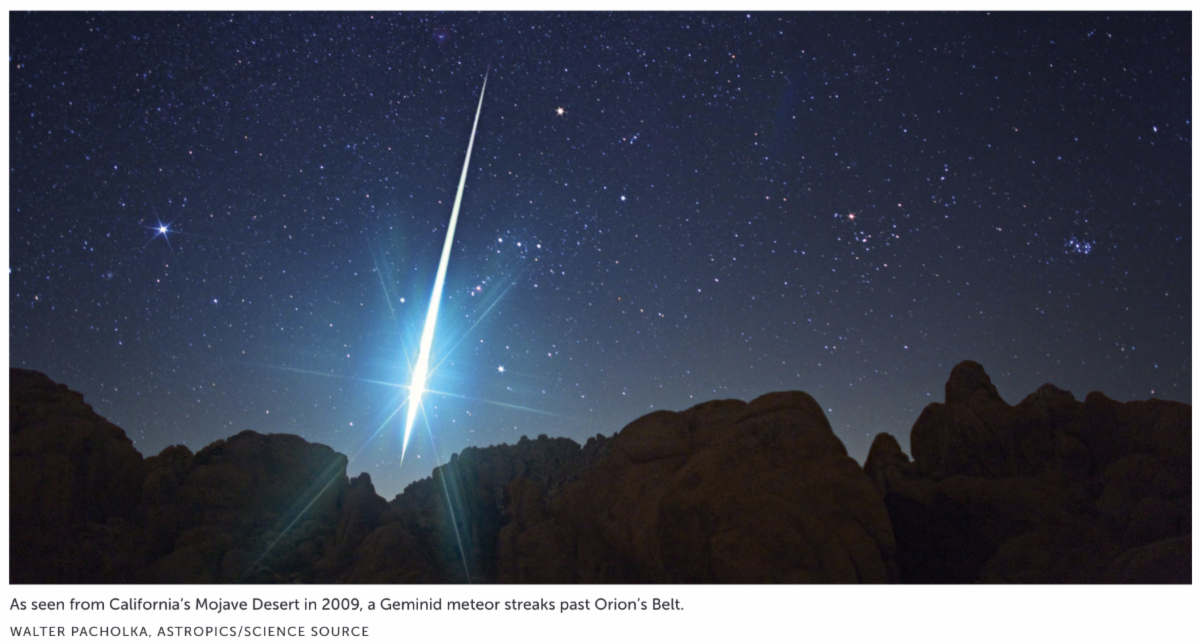 On earth, three days after the Geminids peak around the world, Dec. 16 will be Beethoven’s 250th birthday, one week after mine. Following will be the Earth’s birthday, Jan. 1, 4.6 billion, BCE.