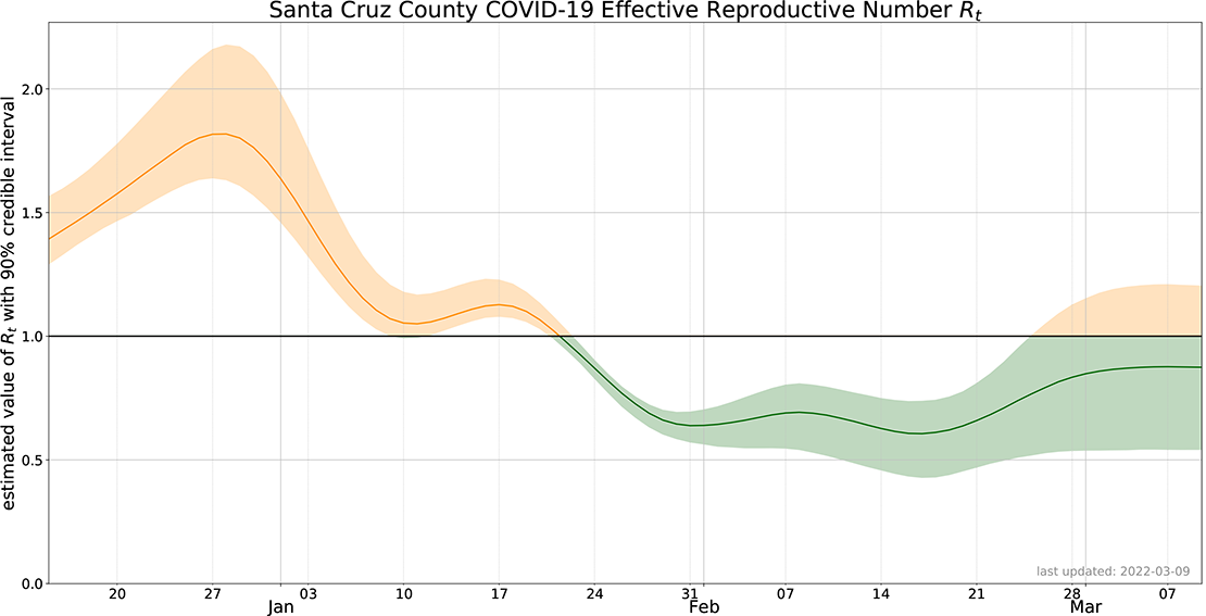 The county's Effective Reproductive Number is below one. See chart below. Numbers above one show the spread of the virus is increasing. Below one means the spread is decreasing.