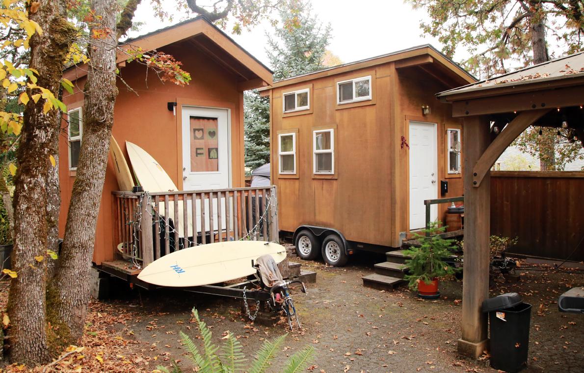 Tiny homes like the ones above in a church parking lot in Eugene, Oregon might be enough for an individual but aren't enough for the needs of school children.