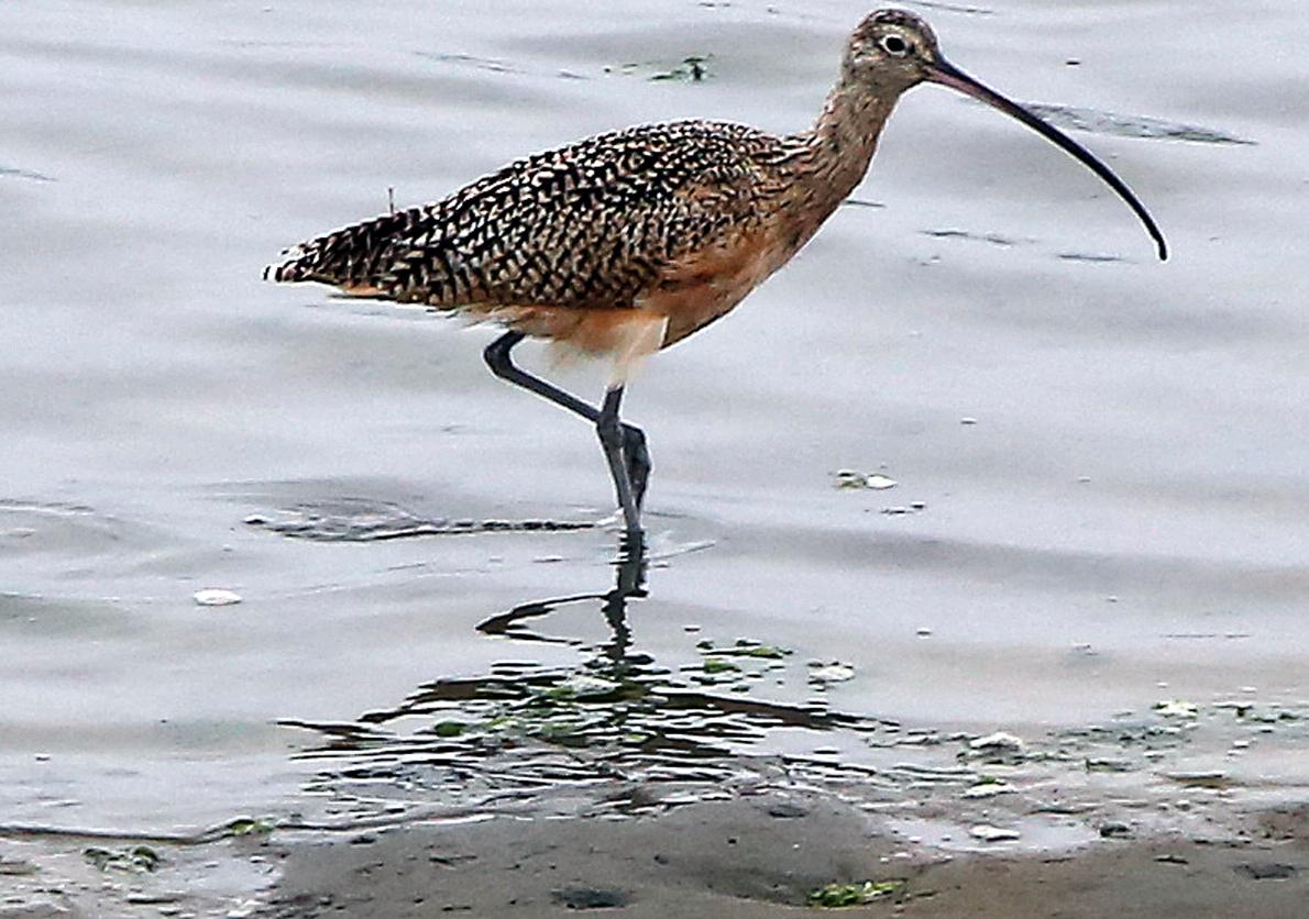 A long-billed curlew prowls the waters of Moss Landing for afternoon tidbits.
