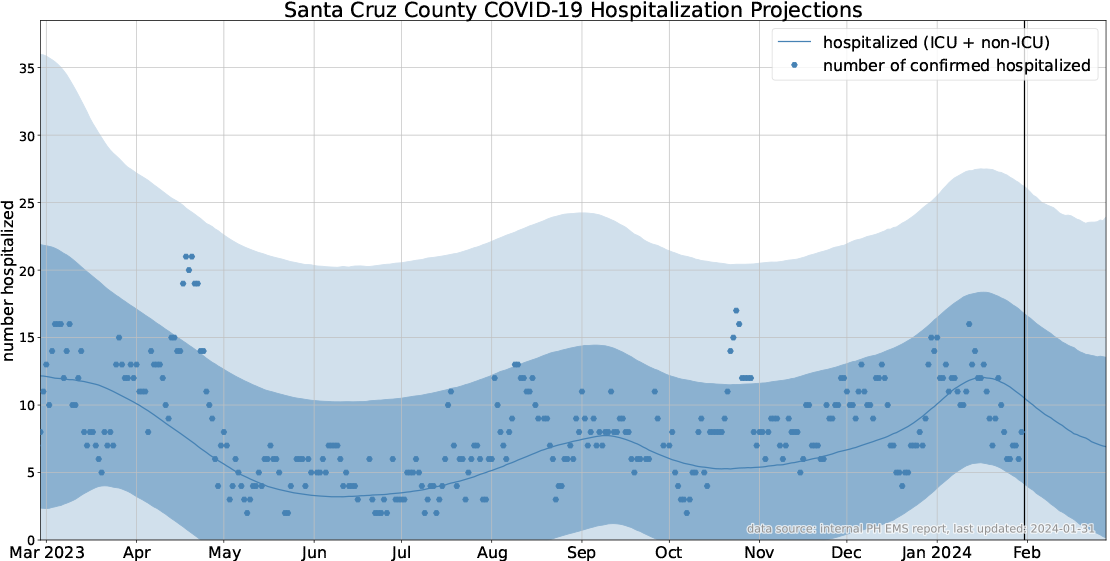 The California Department of Public Health and Santa Cruz County Health Department regularly release data on the current status of Covid-19 in the county as well as information on influenza, Respiratory Syncytial Virus (RSV), and Mpox. Since cases of Covid are still appearing, and there are still vulnerable people, I will continue reporting the graphs below.