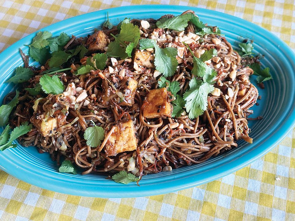 It is the sauce that really makes these noodles sing. The salted nuts add crunchiness and texture and the pickled ginger adds more flavor than the fresh variety.