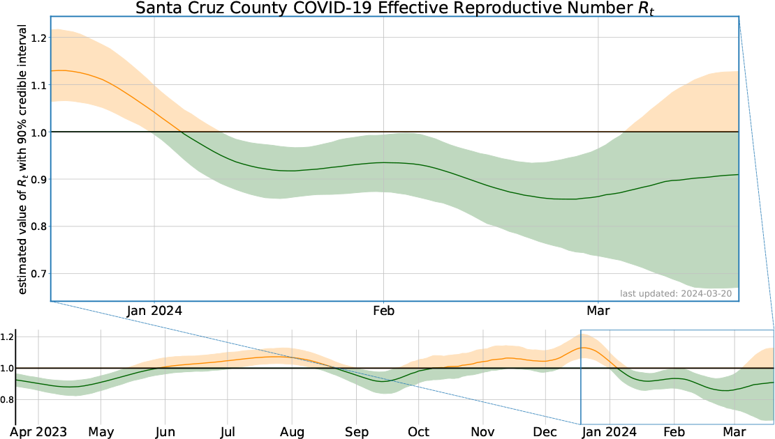 The California Department of Public Health and Santa Cruz County Health Department regularly release data on the current status of Covid-19 in the county as well as information on influenza, Respiratory Syncytial Virus (RSV), and Mpox. Since cases of Covid are still appearing, and there are still vulnerable people, I will continue reporting the graphs below.