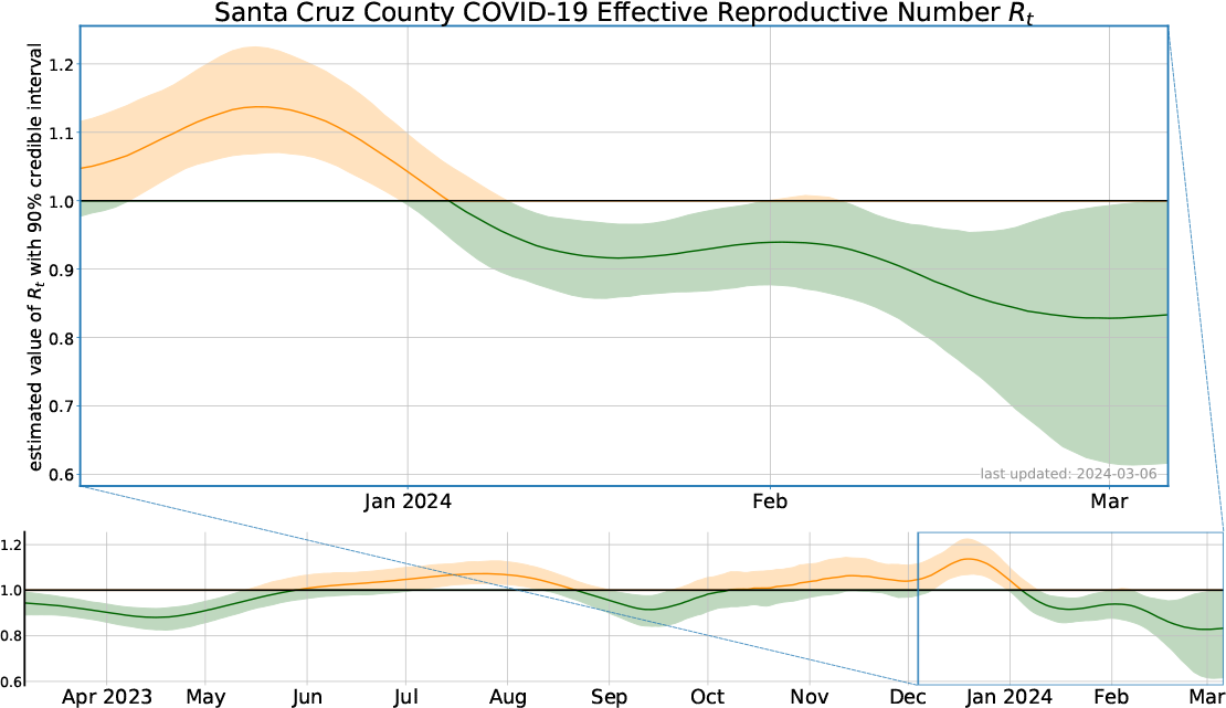 Santa Cruz County Covid-19 Report - Rt Numbers Graphs Confusing for Feb. 28 and March 6