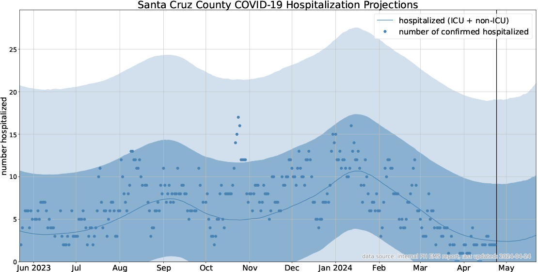 The California Department of Public Health and Santa Cruz County Health Department regularly release data on the current status of Covid-19 in the county as well as information on influenza, Respiratory Syncytial Virus (RSV), and Mpox. Since cases of Covid are still appearing, and there are still vulnerable people, I will continue reporting the graphs below.