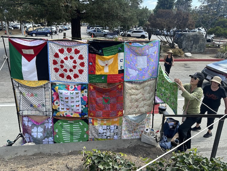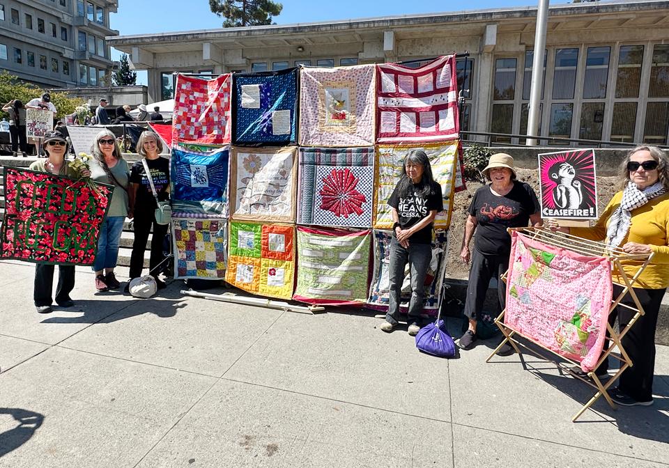 Slowly quilts started coming in from around the Monterey Bay and beyond. Reports of a few broken sewing machines along the way, cramped hands that couldn’t stitch like they used to, little stabs from the needles, the continual challenge of finding the hole of the needle.