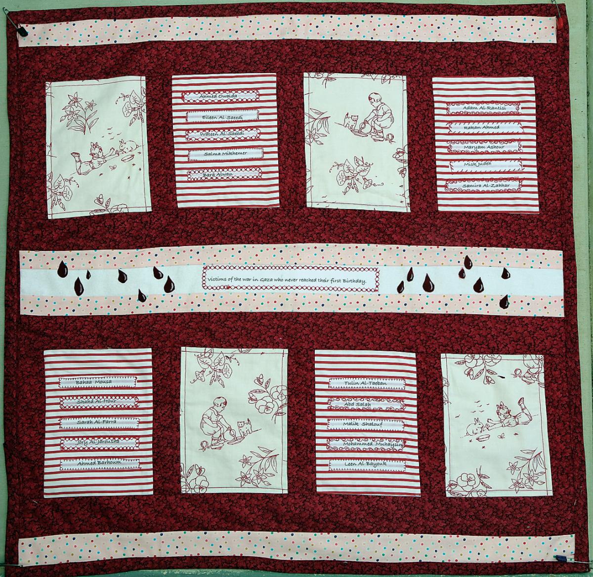 Babies in Gaza Who Never Made It To Their First Birthday Quilt Project started in mid-July out of frustration over the unending depressing news stories out of Gaza of young children being killed by the Israeli government and its soldiers.