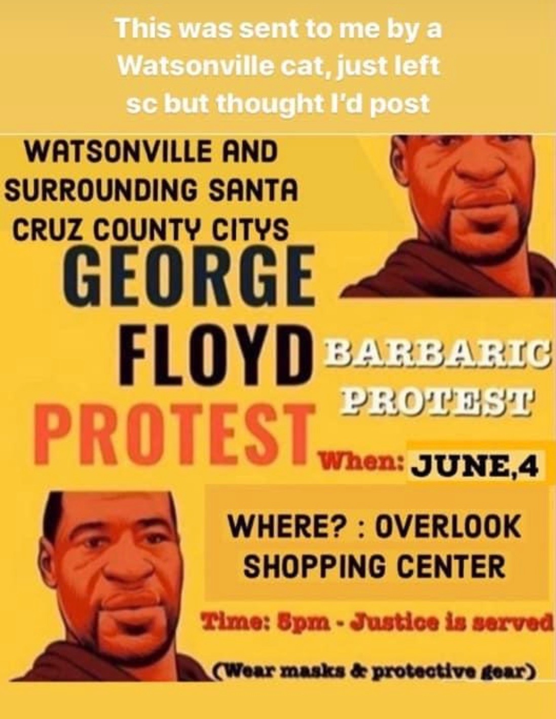 On June 3, the yellow poster below, circulated online around Watsonville. By Thursday, many businesses at the Overlook Shopping Center and downtown on Main St. began, at great expense, to install plywood over their windows.