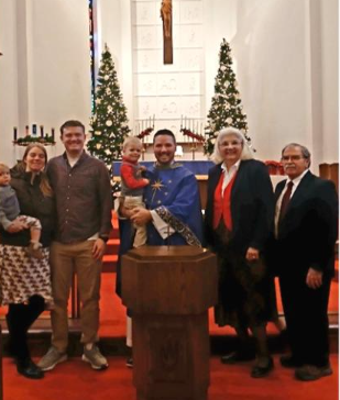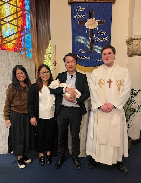 Pastor Jacob Swenson and members of West Portal Lutheran Church had a special addition to their Christmas Eve service as they welcomed Adam, son of Joseph and Phuong, through the waters of baptism.