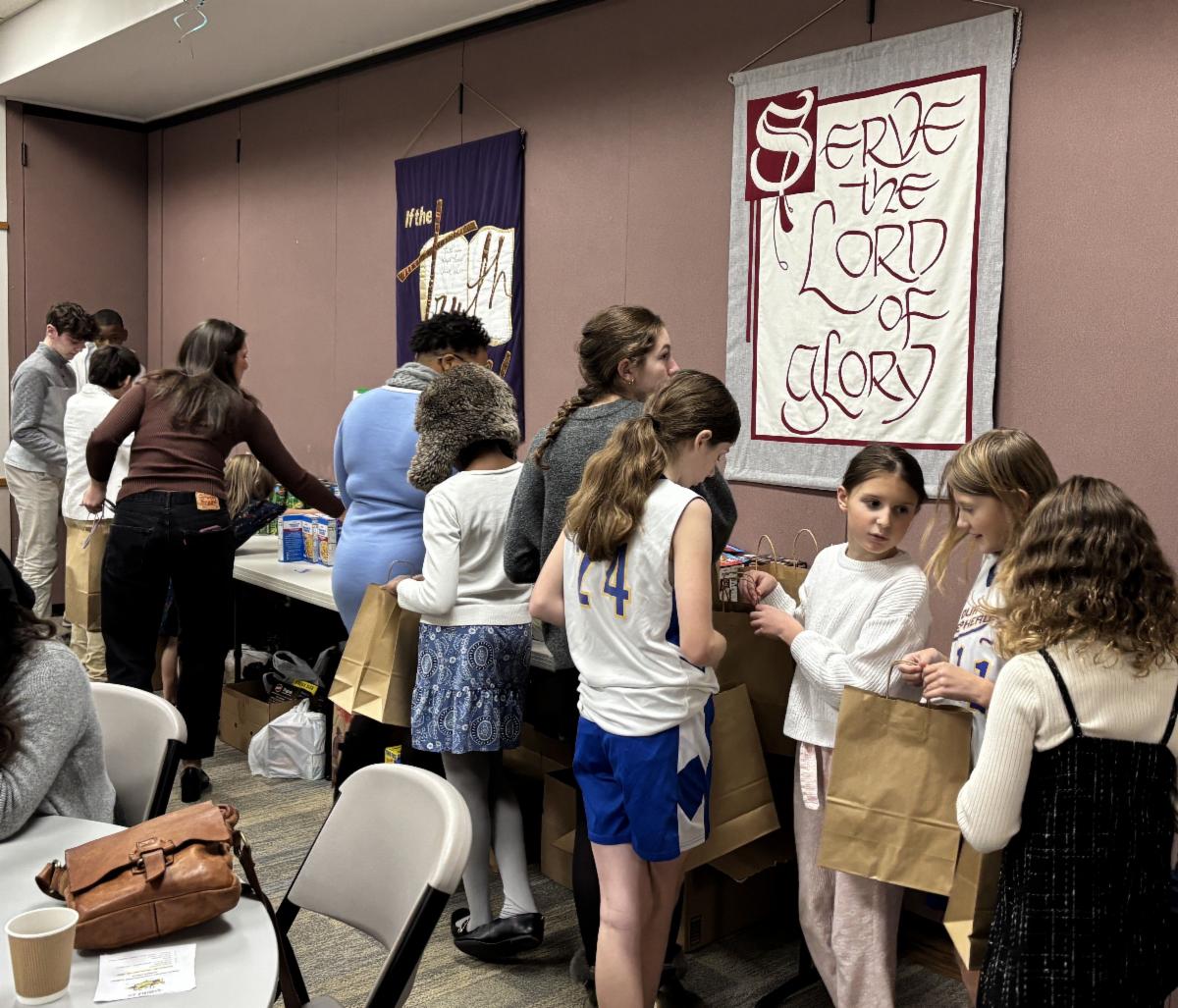 Members of Ascension of Christ Lutheran Church, served by Pastor Larry Loree, again collected food items for the food pantry ministry at Peace Lutheran Church (Michigan District) on Detroit's east side to help provide 70 Thanksgiving dinners for families in need. The youth of Ascension of Christ joyfully participated in putting the dinner boxes together during their Sunday Fellowship Hour.