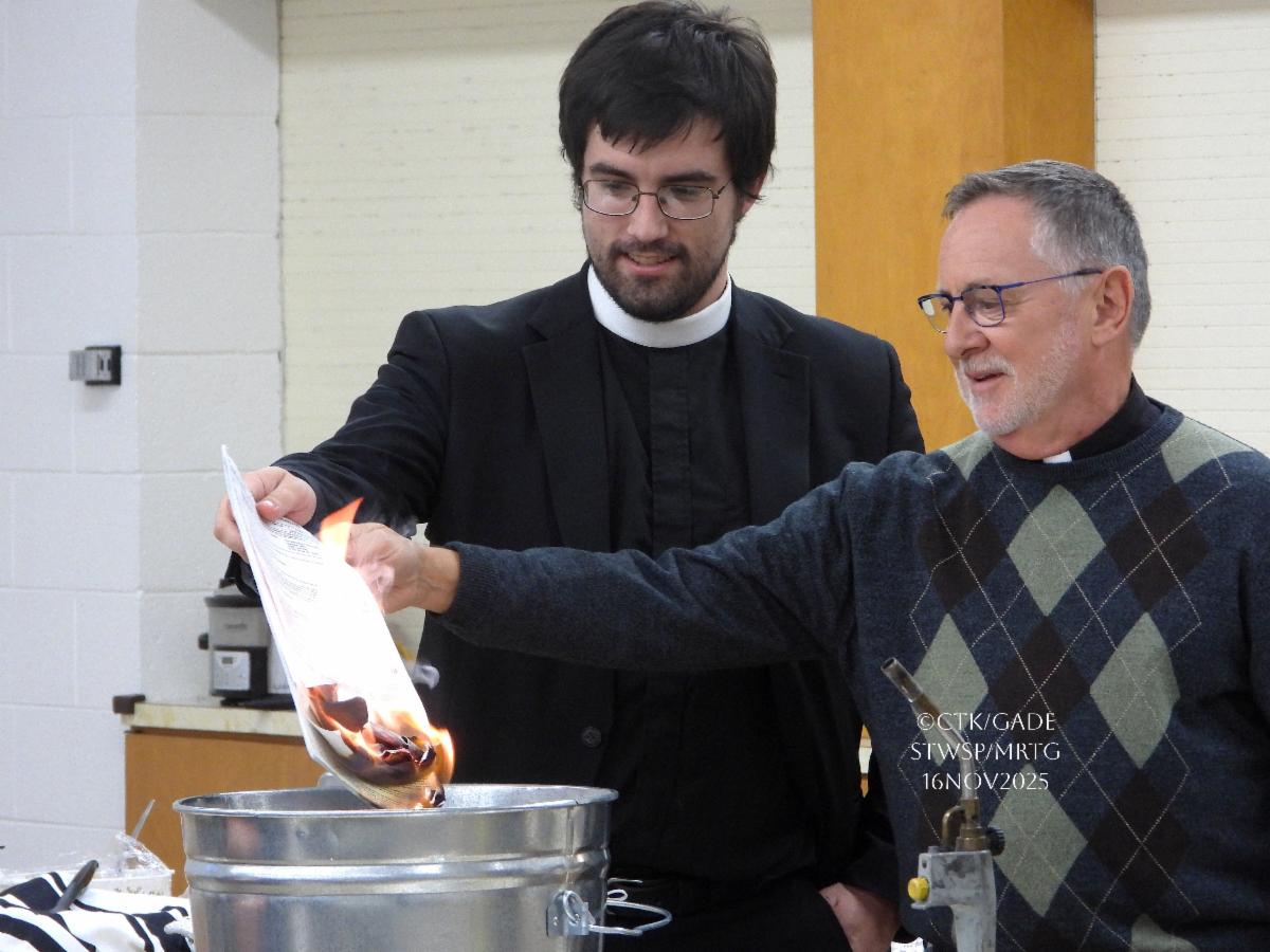 Pastor Solomon Spangler and the congregation of Christ the King Lutheran Church recently shared some exciting news: they officially paid off the mortgage! A mortgage burning followed worship. Pastor Emeritus Randy Boelter joined the congregation as they celebrated this accomplishment.