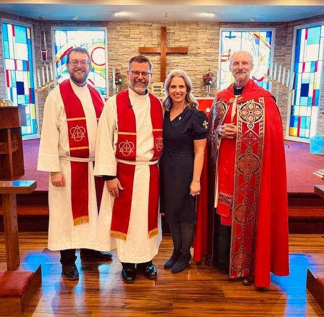 | | Pictured: Pastor Jared Rudolph, Pastor Jeff Teeple, Deaconess Gina Teeple, and Bishop Jeff Miskus. | | |