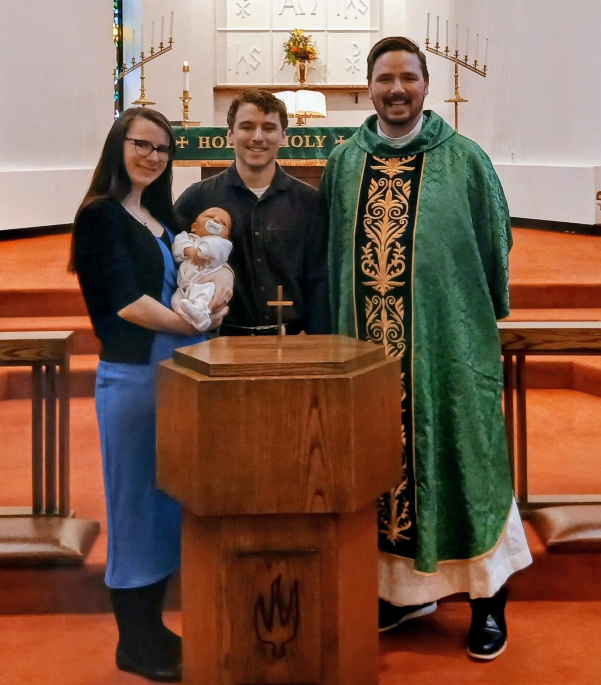 Pastor Adam Koontz and members of Redeemer Lutheran Church recently welcomed their newest member through the waters of Holy Baptism. We rejoice with the Beers family in their little one becoming God's child!
