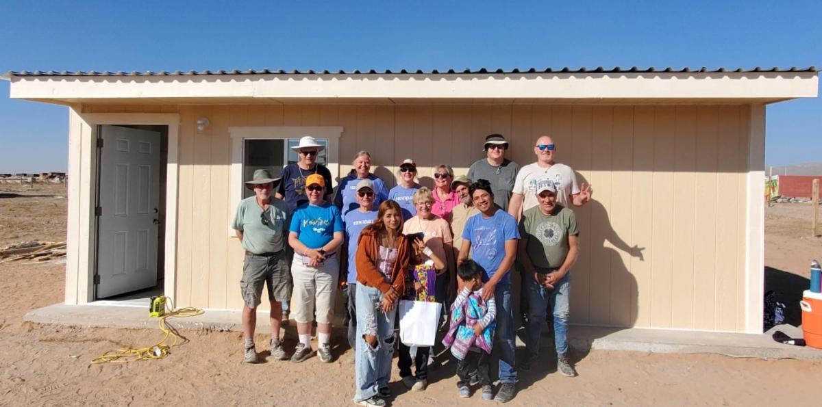 | | Working alongside members of Ysleta Lutheran Mission Human Care, 12 volunteers from Peace Lutheran completed a 12-by-24-foot home for Josue, Raquel, and their children, Miranda and Randy, in Juarez, Mexico. This collaborative partnership has been ongoing for more than 21 years. | | |