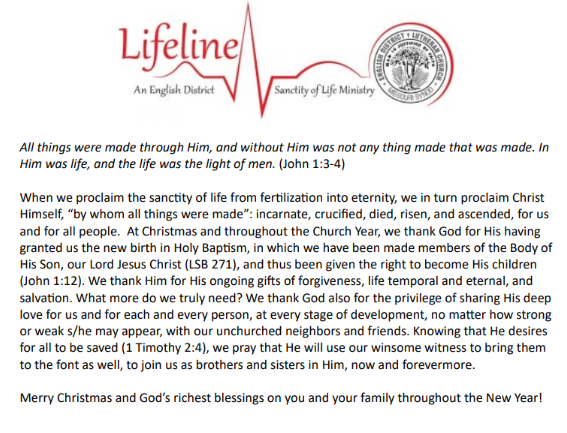 | | We encourage congregations to reproduce and share the following message with your members. Click here for Lifeline's "Advent 3 2025" reproducible file in .pdf format. Click here for more information on Lifeline. | | |