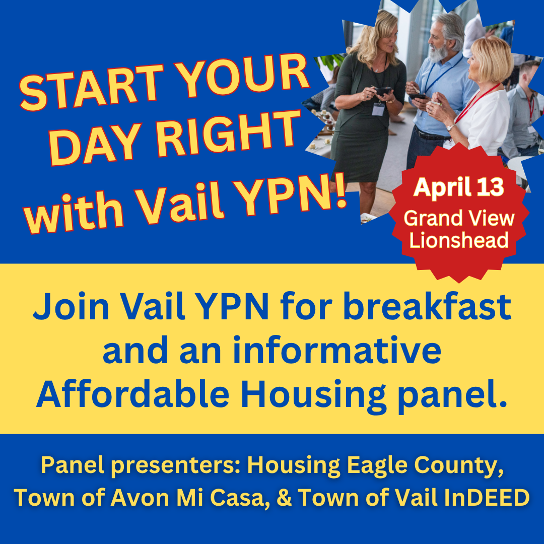 Networking and education in one event! Vail YPN hosts a breakfast followed by an informative panel discussion on affordable housing/deed restriction options in our community.