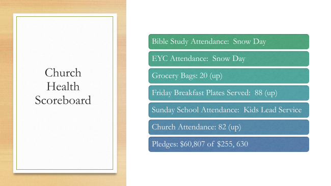 If you added someone to the "Prayers of the People" during our worship service please follow up with a phone call to the office and we will add them to next Sunday's prayer list. Also, let us know how the person you requested prayer for is doing.