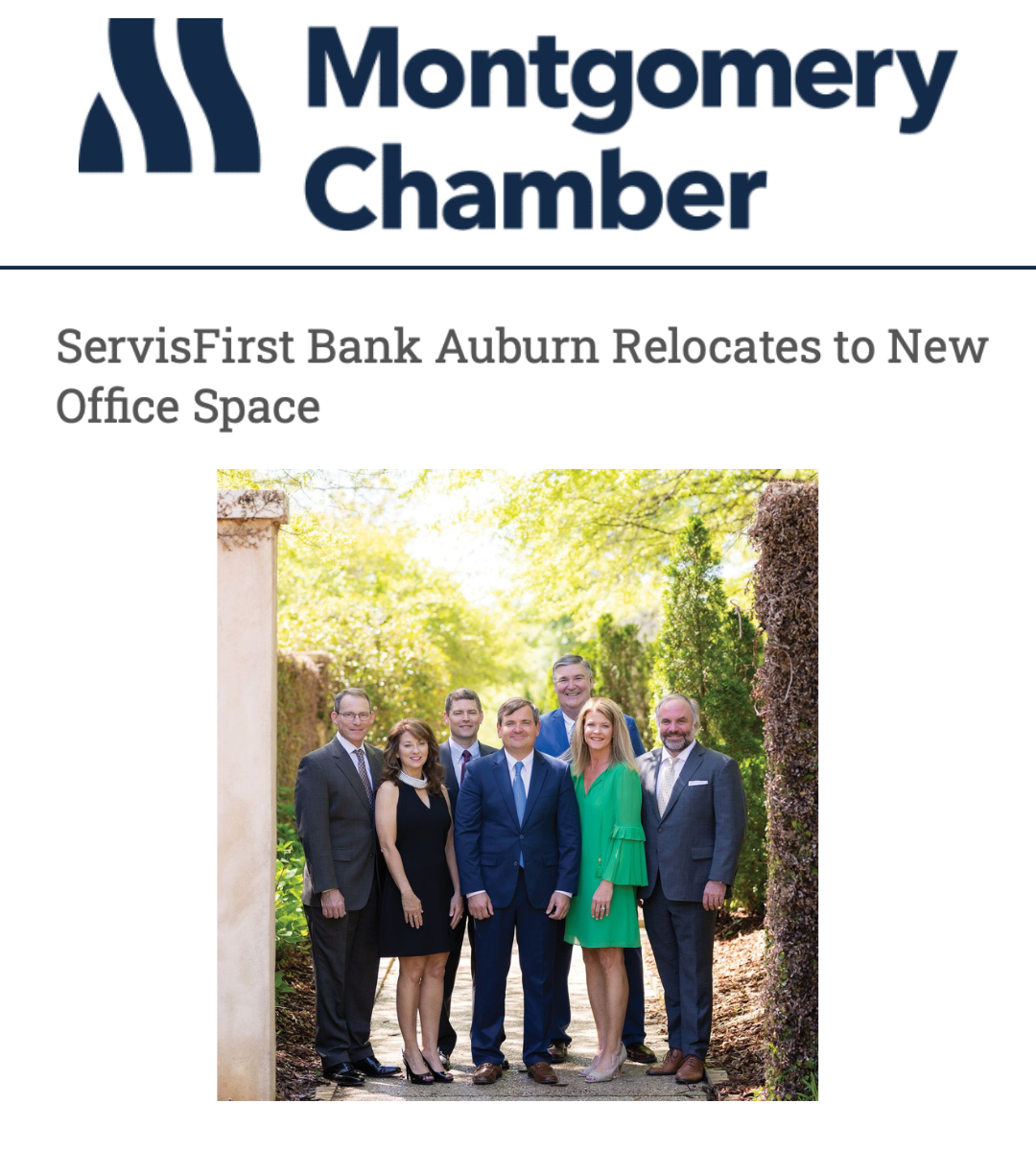 ServisFirst Bank recently relocated its Auburn-Opelika office to a larger, more accessible space found at 2320 Moores Mill Road, Suite 100, Auburn, AL 3683. The move reflects the bank's dedication to serving clients with convenience and excellence while supporting the continued growth of the Auburn-Opelika market.
