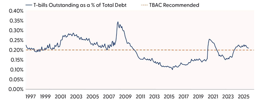 These Treasury decisions reflect broader structural challenges facing government financing. The government’s persistent budget deficits of $1.5–2.0 trillion annually require continuous Treasury issuance to bridge the gap between spending and revenue. With supply and demand imbalances creating challenges for longer-maturity securities, the government is likely to continue to rely on T-bill issuance rather than coupon securities to meet financing needs.