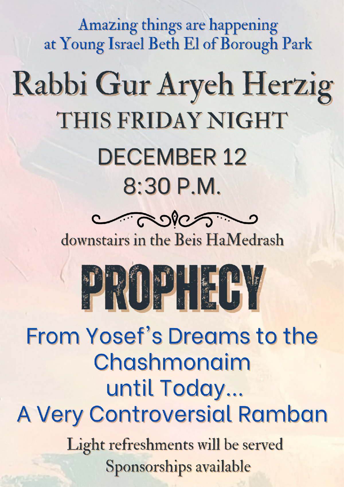 8:30 PM Friday Night Lecture R' Gur Aryeh Herzig