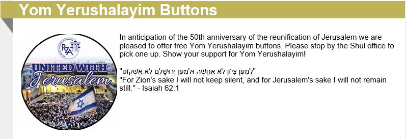 Here's what One Shul did to Promote Yom Yerushalayim Buttons to their Community: