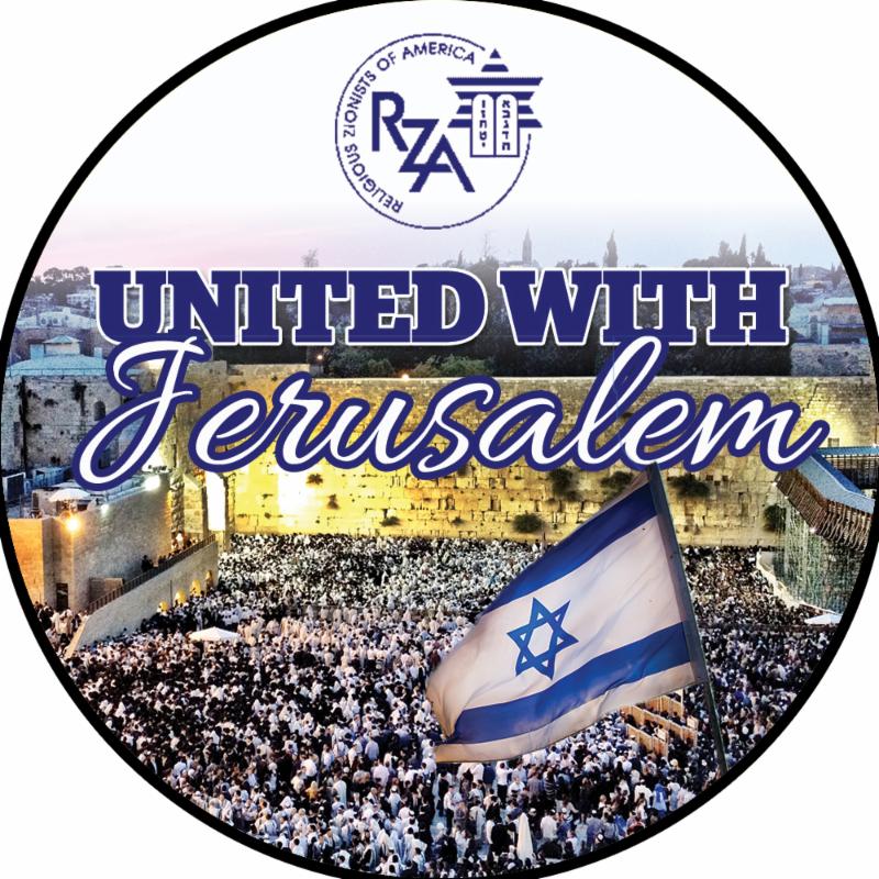 "United with Jerusalem" buttons.