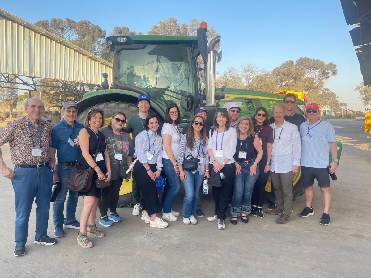 | CommUNITY Journey participants with a tractor provided to Kibbutz Nir Oz through an allocation from the Rebuild Israel Fund | | |